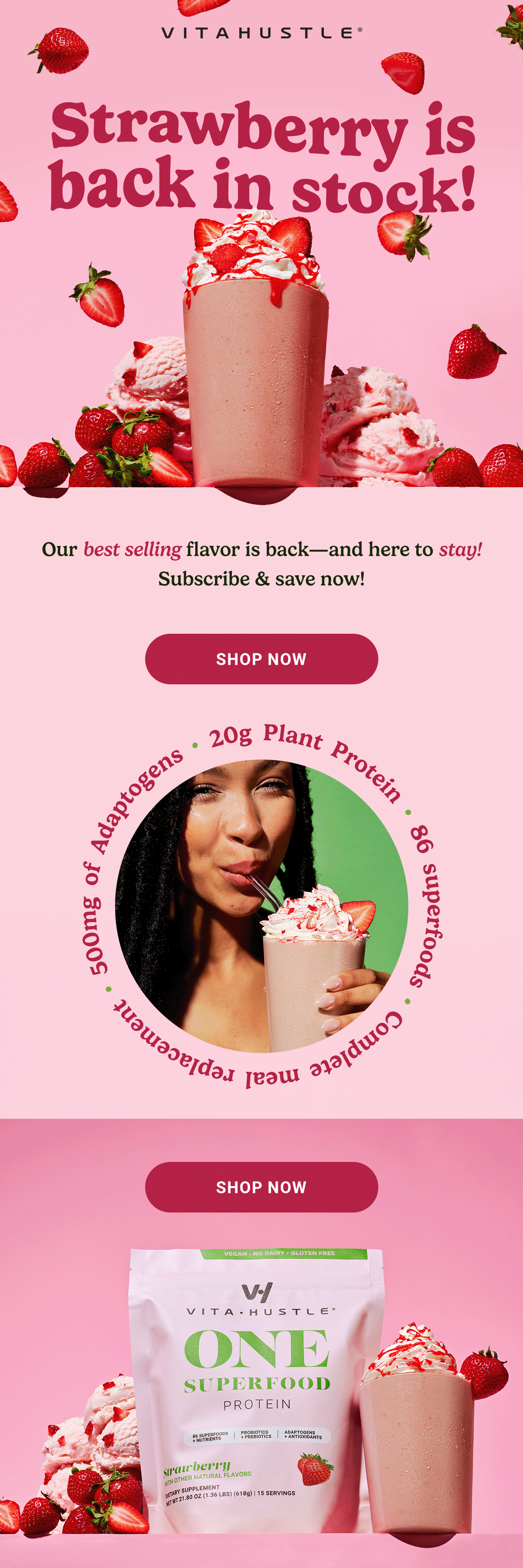 VitaHustle was founded by Kevin Hart as a superfood nutrition brand, with its flagship product - The ONE, a new kind of nutrition shake that makes daily nutrition easy.